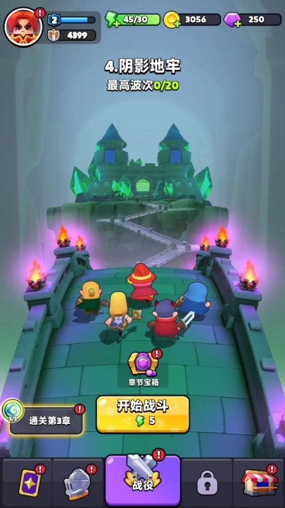 通关之后会获得金币与经验奖励,返回主界面并点击“英雄”选项,就能使用这些资源为你的英雄提升等级了。