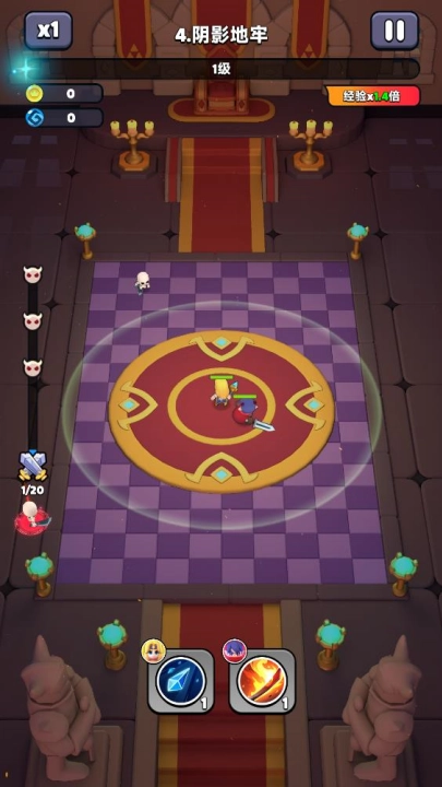 在英雄选择完毕后,他们会自行发起攻击,协助你战胜出现的怪物,进而获取经验值。