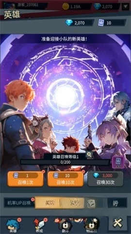 可以随时进入招募系统,寻觅更强大的英雄,来增强你的队伍实力。