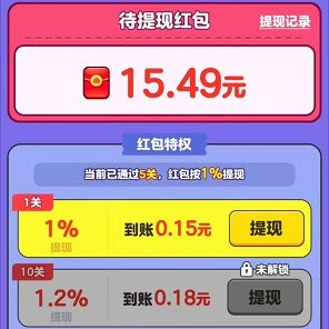 正常的红包奖励同样采用百分比提现方式,提现门槛仅为0.1元起。