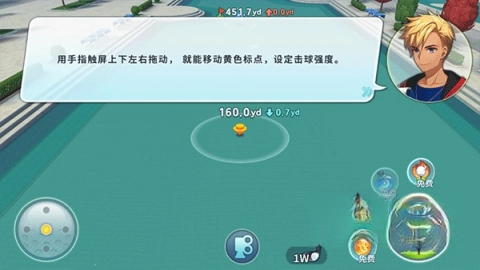 按住屏幕,拖动手指移动指示标记,以控制击球力度。