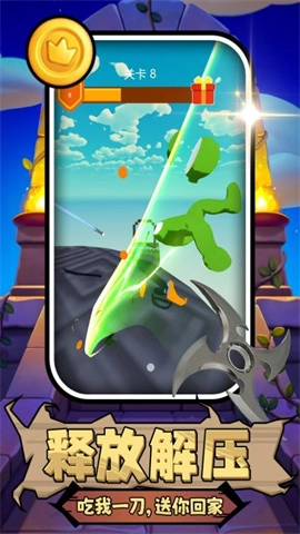 这款游戏采用竖屏操作设计,上手十分简单。玩家只需点击屏幕,就能轻松完成砍杀动作和躲避攻击的操作。游戏的核心玩法是不断砍杀敌人,直至成功通过当前关卡,在此过程中还能解锁各类不同的武器,以此来增强自身的战斗力。
