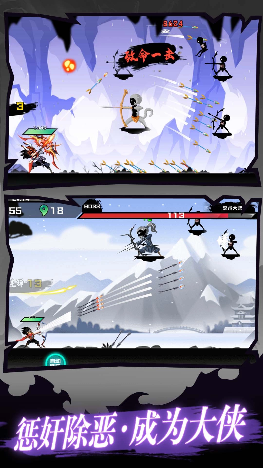 系统升级机制:玩家在游戏过程中通过射箭行为积累经验值,以此实现角色等级的提升,同时还能对箭矢进行强化升级,进而增强自身的射箭技艺与攻击能力。