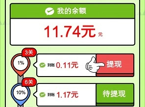 玩到第六关时还有机会再领一个红包,不过难度或许会大一些。