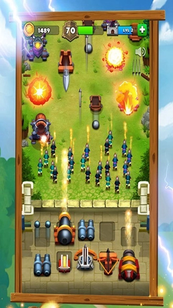 丰富多样的游戏关卡:多样的关卡设计让玩家沉浸其中,通过合并防御塔与各类武器,抵御敌人对城堡的入侵,以此提升防御与攻击能力。