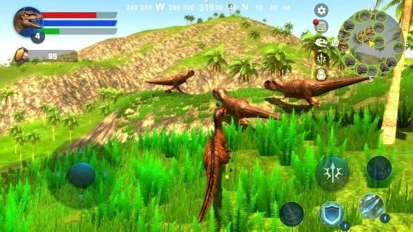 玩家需要同时关注自身的生存状态,以及周围环境和潜在威胁。游戏里的敌方恐龙类型多样,涵盖小型下颌龙到巨型腕龙,每种恐龙都具备独特的攻击模式与生存策略。游戏的任务系统设计精妙,玩家需通过狩猎、搜集资源以及和其他恐龙战斗来达成任务,进而提升自身的生存能力。此外,游戏还融入了团队协作元素,玩家能够与其他迅猛龙组成队伍,一同应对更强大的敌人,这使得游戏的趣味性和挑战性都有所增强。