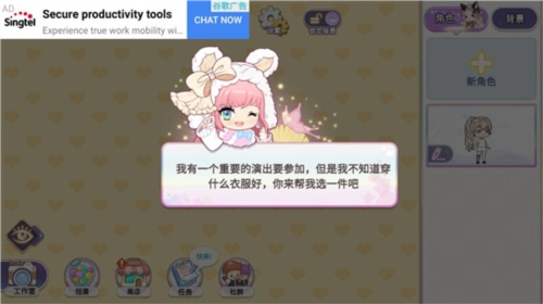 首先,我们先来帮YOYo挑选一件礼服吧,点击YOYo把她放置在屏幕中间