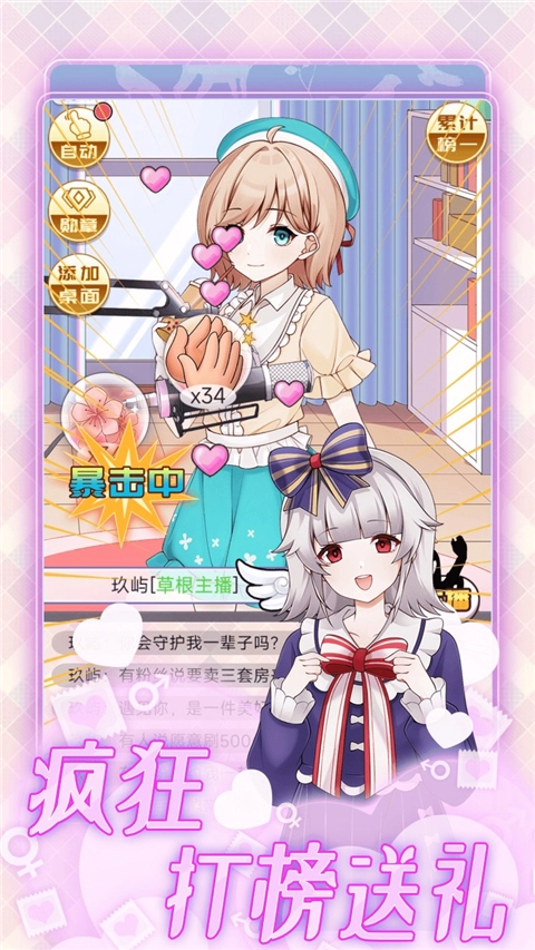 榜一模拟器是一款以直播为主题的休闲模拟类游戏,玩家可以通过赠送礼物来提高自己的排名,从而竞争“榜一大哥”的称号。游戏里有多位风格各不相同的主播,每个主播都具备独特的魅力与个性。玩家能够通过关注主播,进入她们的直播间并参与互动。在赠送礼物的过程中,玩家可以慢慢解锁主播的小秘密,知晓她们的生活状况和心情变化。游戏中的礼物类型十分丰富,包括别墅、火箭、跑车等奢华礼物。
