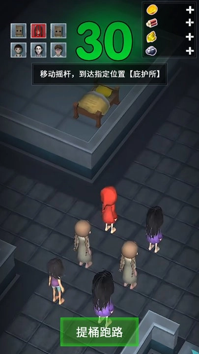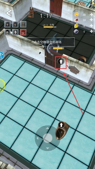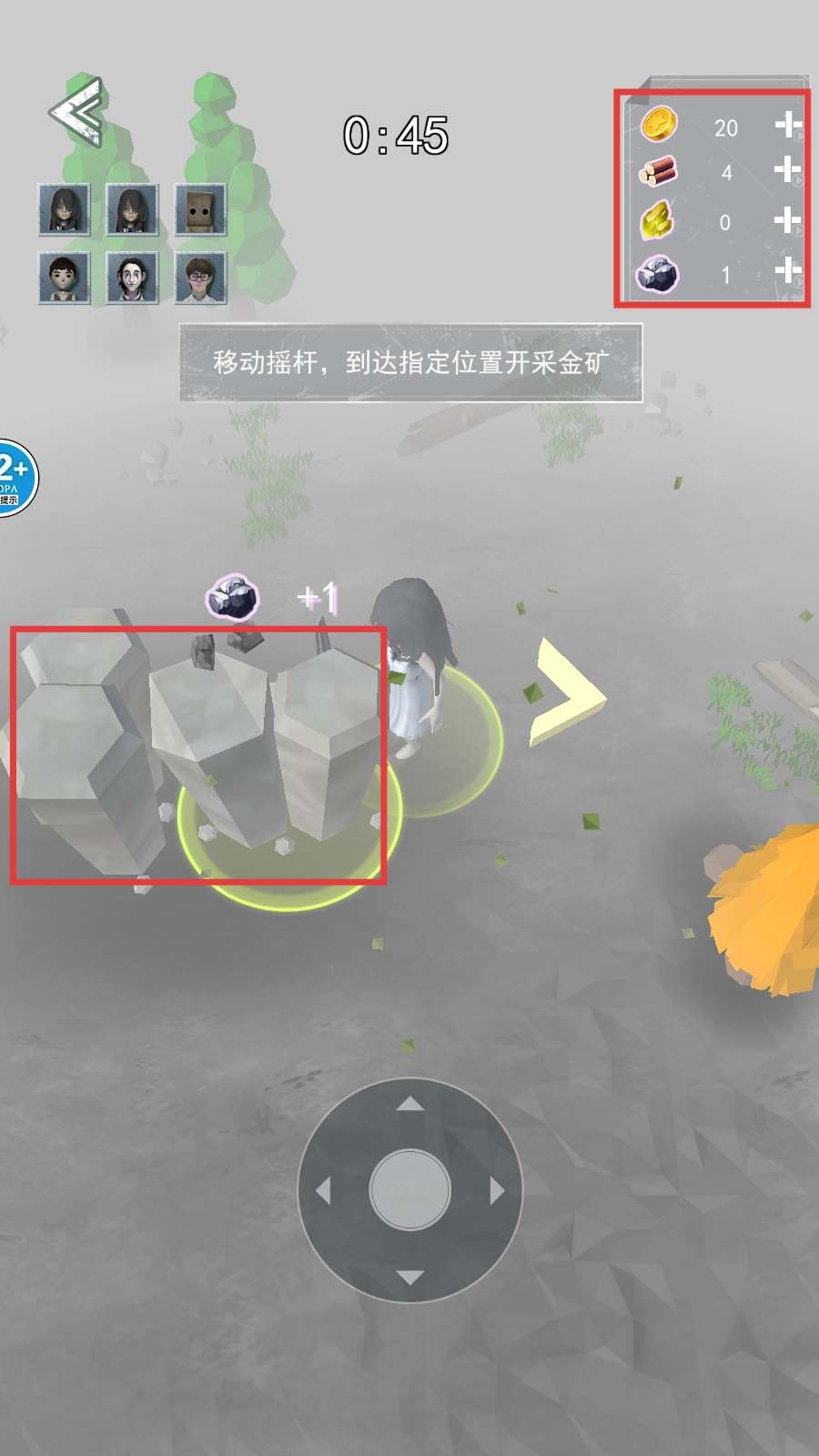 我们按照提示操作移动摇杆,让角色靠近物资所在的地方,开采并获取资源,好为接下来的防御工作做准备。