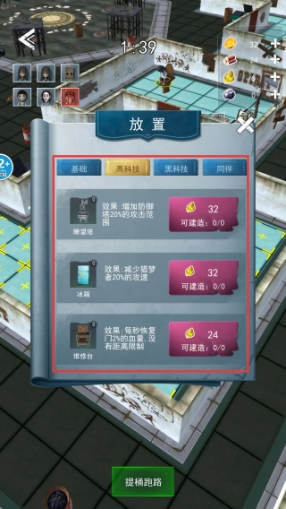 进入建筑界面后,浏览【瞭望塔】、【冰箱】这类建筑,结合金币等资源的情况,挑选合适的建筑进行建造,以此来增强防御能力。