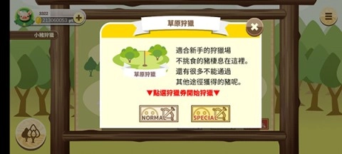 在农场页面,点击标有“HUNT”的房子,就能进入“小猪狩猎”环节。