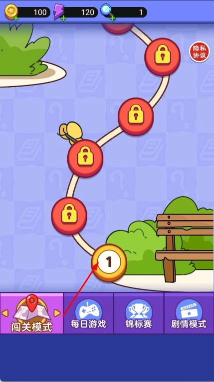 打开游戏后,在闯关模式的界面里,挑选第1关,然后点击进入对应的游戏场景。