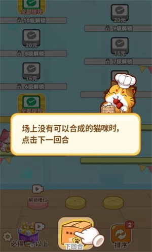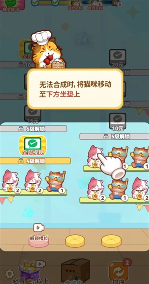 游戏自带自动排序功能,只需点击一下,相同等级的猫咪就会自动排列整齐,能大大节省合成所需的时间。
