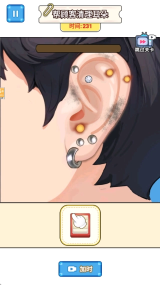 如图所示,我选择了采耳关卡来挑战,要在六分钟内帮客人清洁耳部。