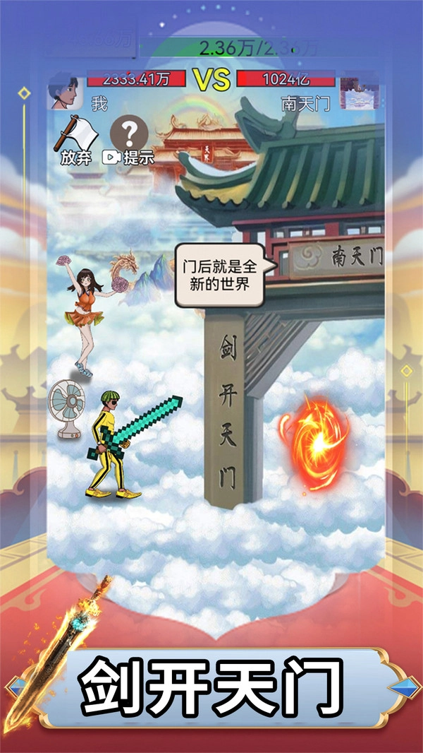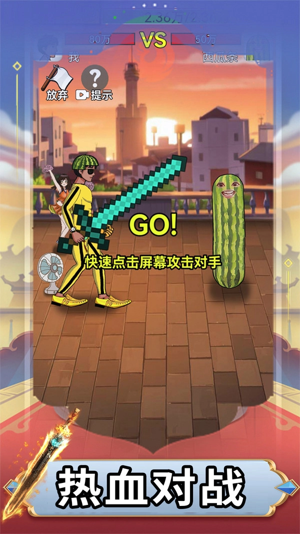 当遇到像卖鱼强这类实力悬殊的对手时,别贸然硬刚,先回到首页,通过点击木桩攒够金币、提升属性后,再回来重新发起挑战。
