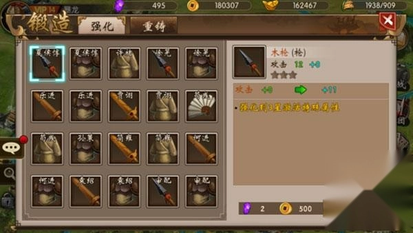 进入“锻造”界面后,就能对当前持有的装备开展强化与重铸操作。