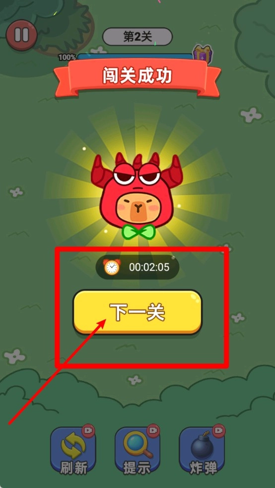 完成关卡后点击“下一关”按钮就能开启新的挑战,系统会记录你的通关时间,并且自动保存当前的进度数据。