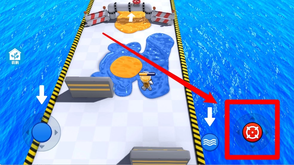 点击右下角红色的瞄准按钮就能发射水枪,颜料喷射攻击可以覆盖地面区域,有助于压制敌人并逐步占领战斗空间。
