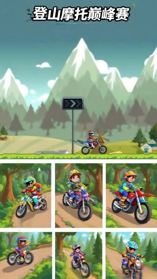 这段文本可以修改为: 以登山摩托竞速为核心,聚焦于“速度与技巧”的双重考验。赛道设计巧妙融合了险峰地形,打破了常规平坦赛道的局限,极具挑战性与多样性。