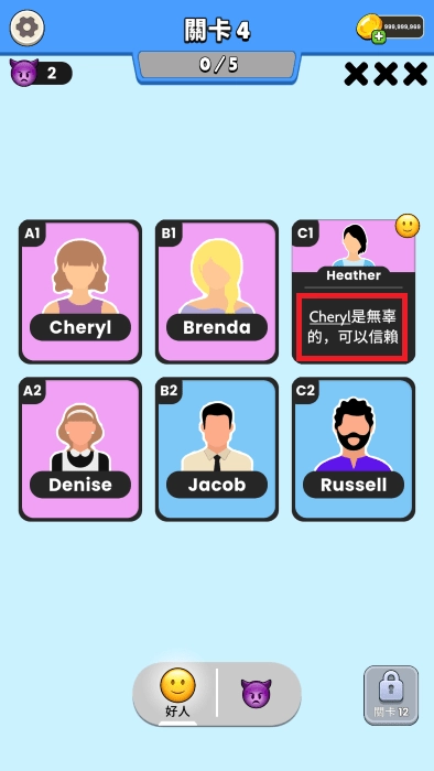只要你认真查看线索,留意细节,要是不够谨慎,就可能会出错,短短几分钟内就会把好人误认为坏人。