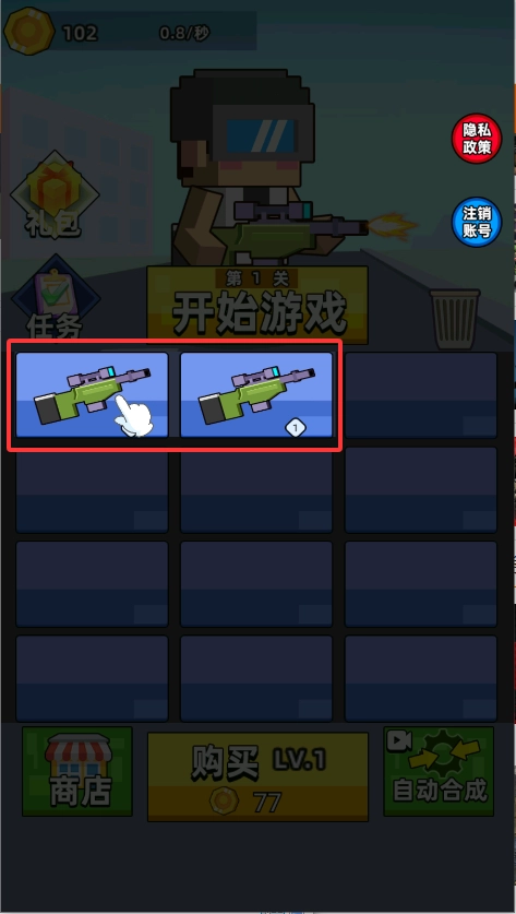 拖动两个相同的枪械,可以合成新枪。