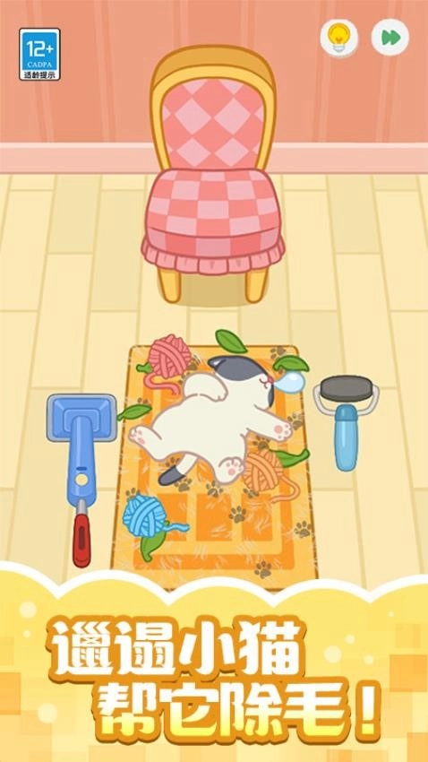 小猫身上沾了不少浮毛,得麻烦你帮忙清理干净,这样就能拥有更可爱的猫咪啦,快解锁对应的工具吧。