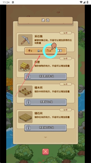 在建造界面里对采石镇进行升级,以此提高石块的采集数量,为之后的建设工作储备所需资源。