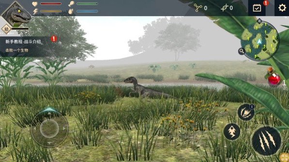 二、战斗攻略 攻击方式 单击:普通撕咬(消耗耐力) 长按:蓄力重击(破防效果) 滑动+点击:甩尾攻击(范围伤害) 属性克制 甲龙克肉食龙(高防反伤) 速龙克草食龙(流血特效) 飞行单位克地面单位(需对空技能) 地形利用 引诱敌人到沼泽减速 在狭窄岩洞卡位大型敌人 高空坠落造成额外伤害
