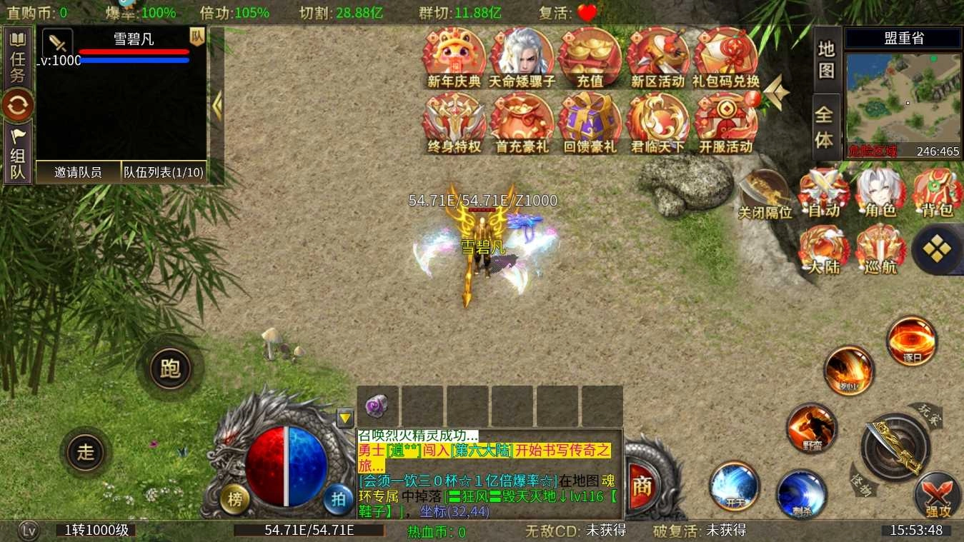 3、副本活动:设有多种副本,跨服激战,世界BOSS,闯天牢,需玩家协作配合,攻克难关获取丰厚奖励。还有各类限时活动,如资源抢夺、跨服竞技等,增加游戏的趣味性和挑战性。