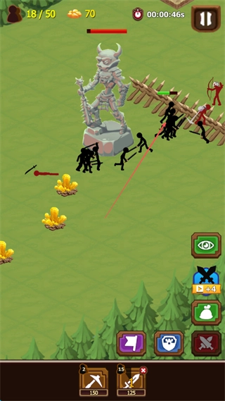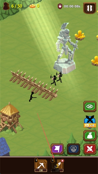 指挥火柴人士兵在战场上移动,借助栅栏之类的地形,对敌方单位发起攻击,与此同时收集资源。