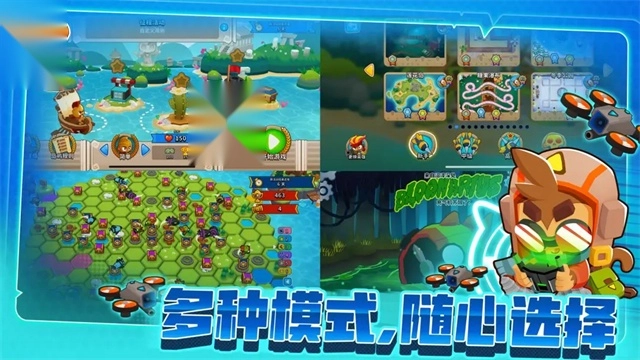 这里有各式各样的飞镖猴、回旋镖猴、大炮、图钉塔、冰猴等不同种类的防御单位。