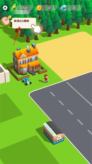 进入游戏后需要完成游戏分配的任务:砍伐两棵树。