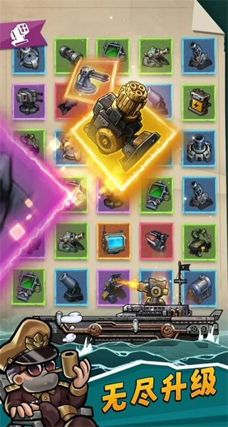 依托海洋仅存的资源来打造武器,合成并迭代舰船的武器配件,按照从基础到高阶的顺序逐步提升,还能借助火力强化实现生存上的逆袭。
