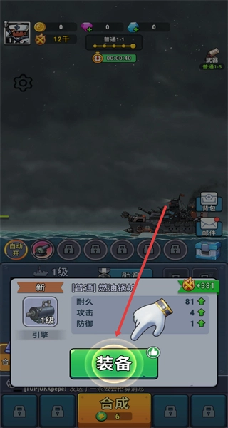 合成装备后,点击装备按钮,把新部件安装到舰船上,以此提高舰船的属性。