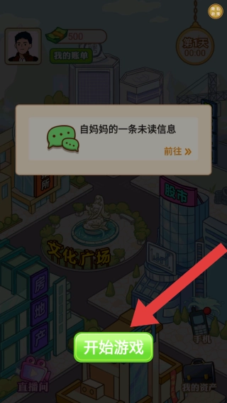 画面显示有一条妈妈发来的未读消息,玩家可以点击进入微信查看这条消息。