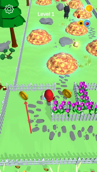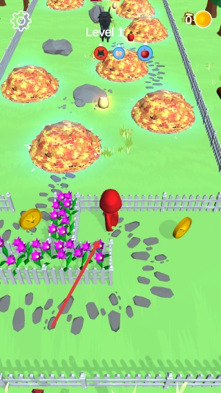 在主界面点击“Tap to play”按钮,即可进入Level1的农场地图场景,之后操控红色角色参与比赛。