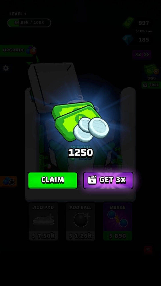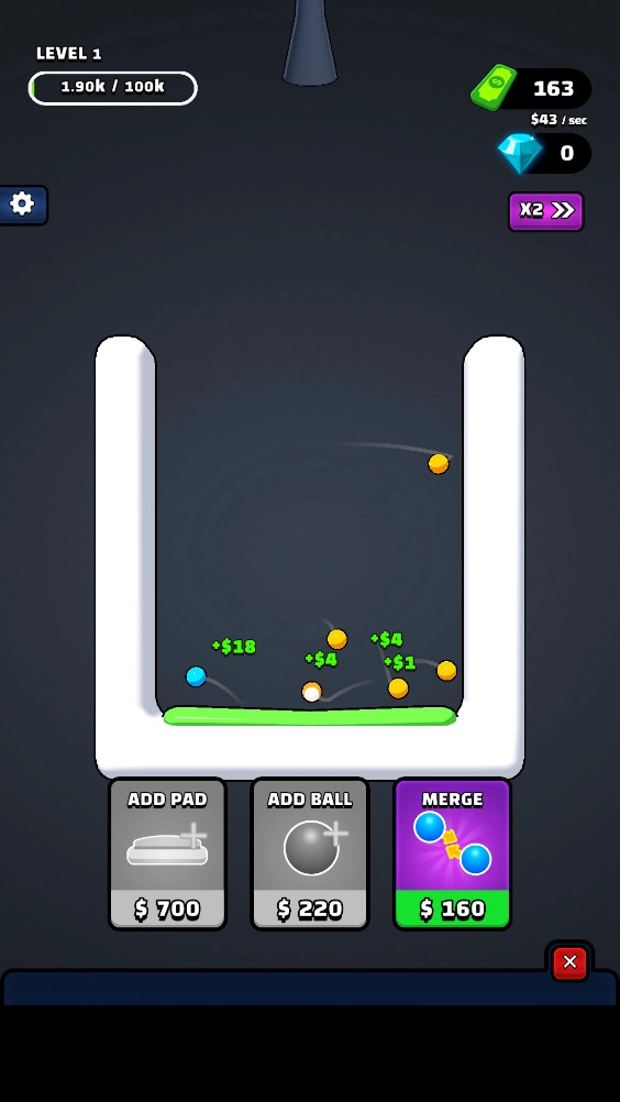 通过弹跳可获得一次合成机会,按照提示点击第三个图标来操作,此操作需消耗25金钱,点击后会有两个球一同弹跳。