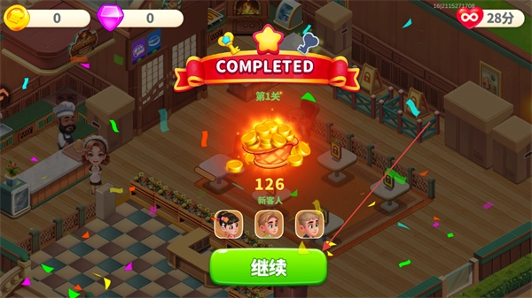 当你完成关卡目标后,会弹出COMPLETED结算界面,点击继续按钮就能进入下一关。
