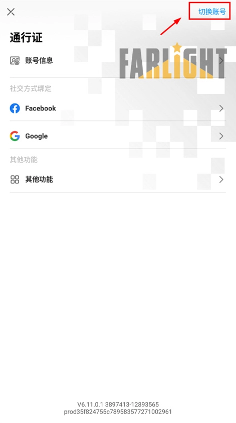 点击右上角“切换账号”;