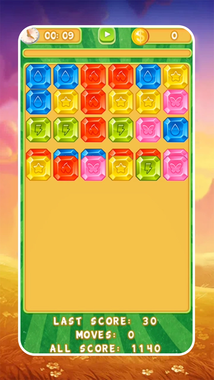 每一关都有时间限制,你必须在20秒内把所有宝石都消除干净才能通过关卡,不然的话就算挑战失败。
