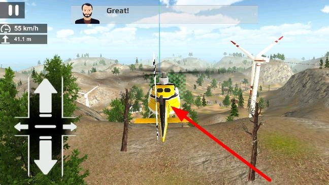 使用左侧方向键操控直升机,调节其高度与飞行方向,在山地环境中保持平稳飞行状态,完成基础的操作任务。