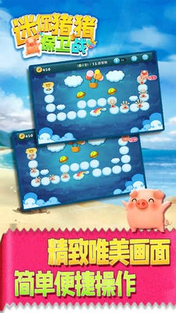 《迷你猪猪保卫战》是一款休闲益智类型的塔防游戏。在游戏过程中,玩家需要建造各式各样的防御塔来阻挡怪物的进攻,守护萌萌的小猪猪不被伤害。这款游戏有着精美的Q版美术风格、多样的关卡设置以及华丽的攻击特效,操作简便容易掌握,适合不同年龄段的玩家体验。随着游戏的推进,玩家会解锁更多的英雄角色和道具物品,体验难度逐步提升带来的挑战乐趣。