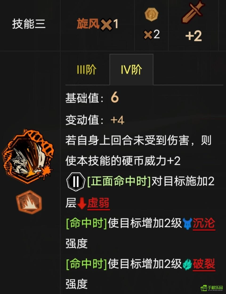 部分技能存在额外条件,这些条件能通过不同途径增强技能的威力。就像前面的例子所示,要是鸿璐在上一回合未遭受任何伤害,他的硬币威力就会从4提升至6。