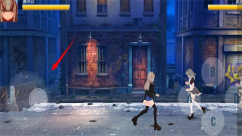 进入战斗场景后,利用虚拟摇杆操控角色进行战斗。