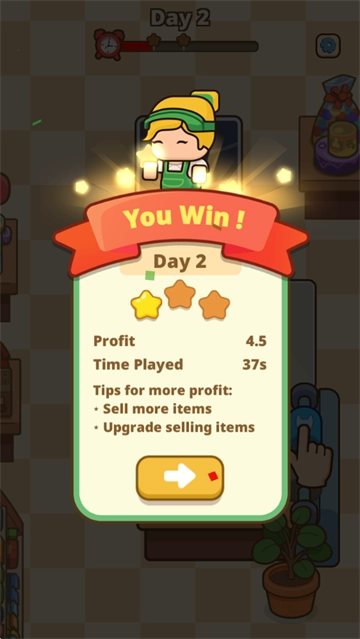 完成每日日常任务,获取额外奖励,合理管理收入,升级经营设备,持续拓展店铺规模,最终成为最厉害的收银员!