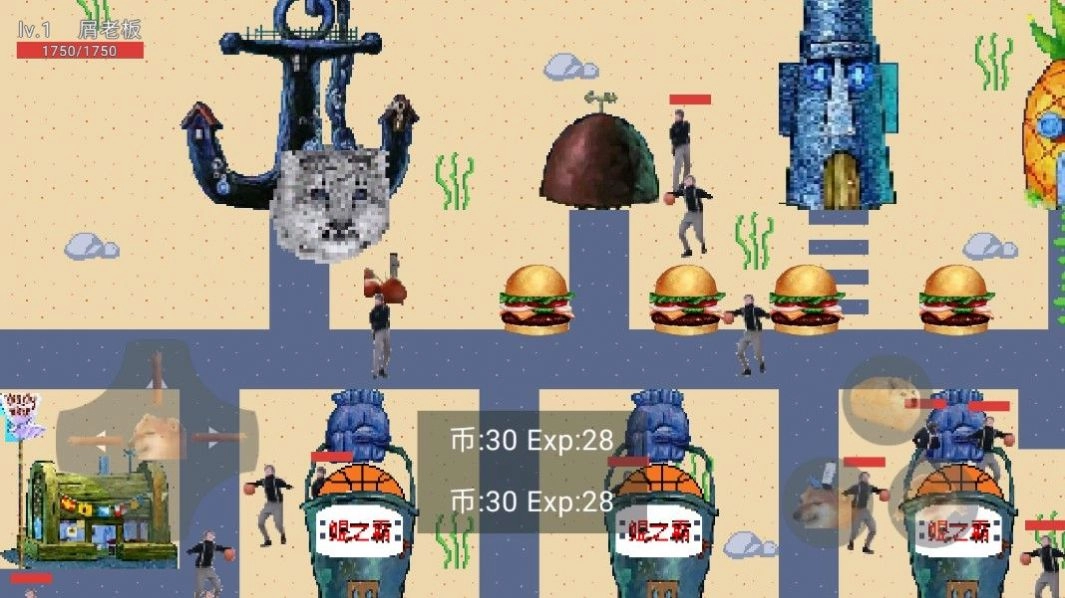屑老板和鲲的对决游戏,场景全是海绵宝宝动画里的经典地方。参与挑战时会遇到不少障碍物,得一路闯过各种关卡。游戏操作挺简单的,设定还特别魔性,点一下就能互动体验,玩起来很解压,另外还有小道具可以领取哦~感兴趣的小伙伴快来试试吧!