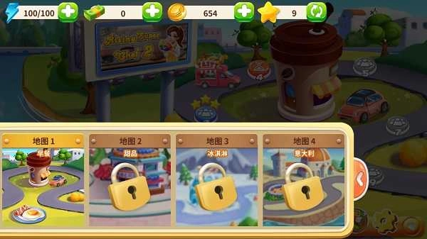 进入游戏后,开启第一站的烹饪管理环节,这里的每一关都会设置不同的任务目标!