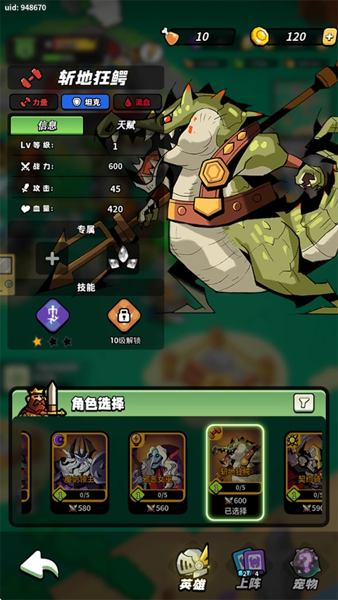 战斧和鳄鱼在前期属于T1强度,到了后期则是T1.5水平,它们是前期战力的核心输出点——毕竟此时圣影的等级还比较低,能吃到的buff有限,所以这两个角色的输出表现最为出色。不过到了后期,输出主力其实就变成圣影了,但这两个位置如果多带几个也是可以的。