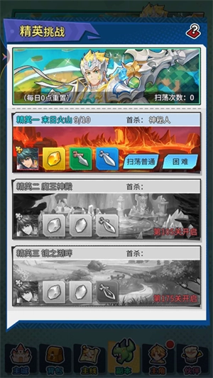 精英挑战每天不限进入次数,但每日扫荡机会为2次