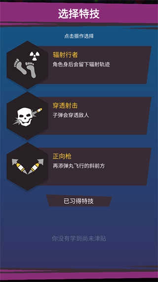 在完成关卡之后可以选择喜欢的技能属性进行加成